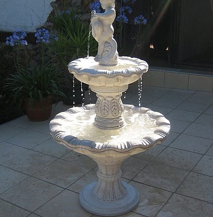Unsere Gartenbrunnen im Barockstil mit Putten und Muschelbecken sind für Liebhaber reich dekorierter Gärten. Der barocke Stil ist verschwenderisch und verschnörkelt: Opulente Verzierungen und schwingende Linien lösen strenge Formen auf. Die mehrstufigen Springbrunnen in weißem Steinguss oder dunkel patiniert passen wirkungsvoll in einen romantischen Rosengarten.