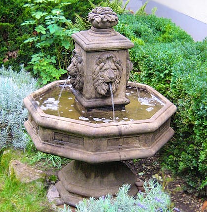 Gartenbrunnen mit Löwenmasken, aus denen das Wasser sprudelt, sind zeitlose Motivbrunnen. Der Löwe als Wappentier verkörpert starke Werte und daher gibt es vielerorts Springbrunnen mit Löwenkopfreliefs oder Steinlöwen: Der Löwe gilt als Wächter und Beschützer und symbolisiert Erhabenheit, Kraft und Mut. Unsere Auswahl an Löwenkopfbrunnen als mehrstufige Springbrunnen auch mit Bodenschale, Wandbrunnen mit Löwenmotiv und Löwenbrunnen in Naturstein: