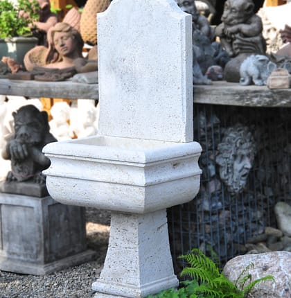 Vor Mauer, Gartenzaun oder Hecke gesetzt nehmen Wandbrunnen weniger Raum ein als freistehende Gartenbrunnen. Ein romantischer Wandbrunnen kann als Zielpunkt eines Gartenweges überraschen, im Innenhof umgeben von mediterranen Kübelpflanzen zaubert er ein südländisches Flair. Wir führen Wandbrunnen in verschiedenen Ausführungen: mit Wandplatte, Brunnenstock oder Sockel, elegant-moderne Wandbrunnen und barocke mit Muschelbecken, Wandbrunnen aus Naturstein, mit Löwenkopf und anderen Motiven. Lesen Sie unseren Blog mit »Bildern und Ideen für die Gartengestaltung mit Wandbrunnen.
