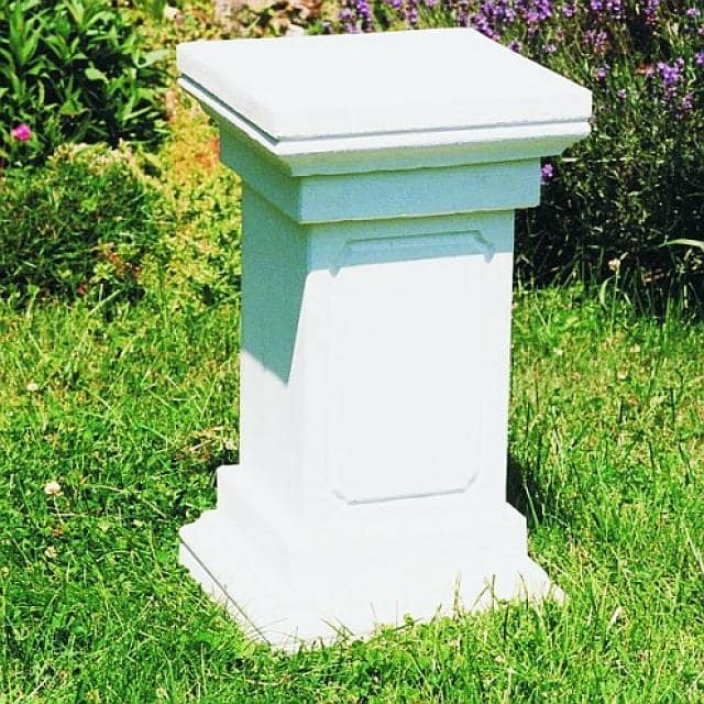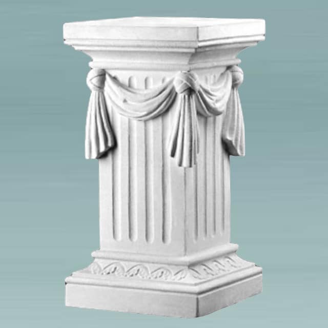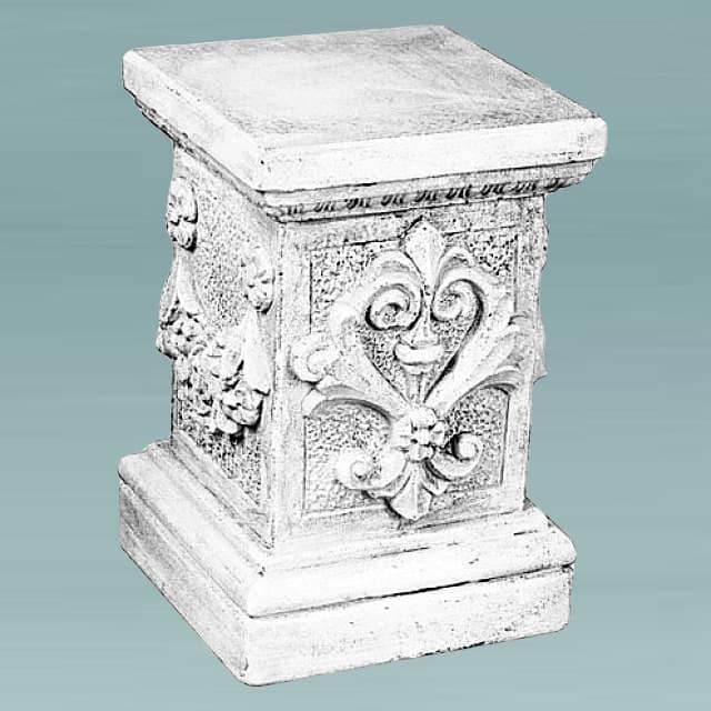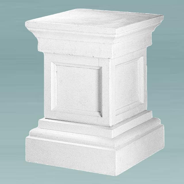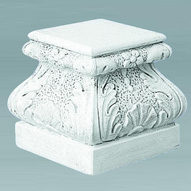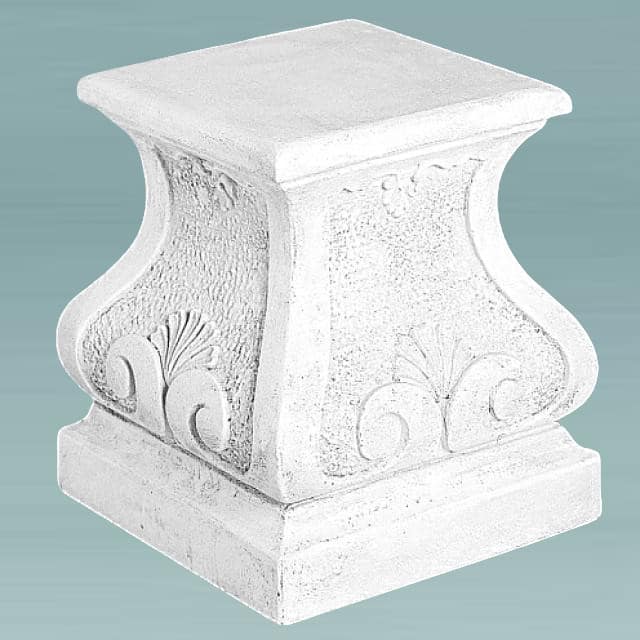 Steinguss-Sockel werden als plastische Abgüsse von modellierten Vorlagen hergestellt. Der Steinguss wird in verschiedenen Ausführungen produziert, zum Beispiel als Weißbeton oder Steingut.