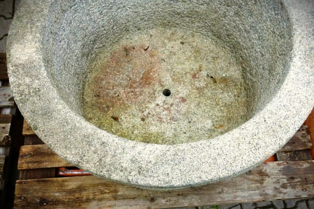 Die zwei Granittröge sind in Handarbeit gefertigte Einzelstücke, mit viel Erfahrung und Sorgfalt von Meisterhand aus Natursteinblöcken gehauen.