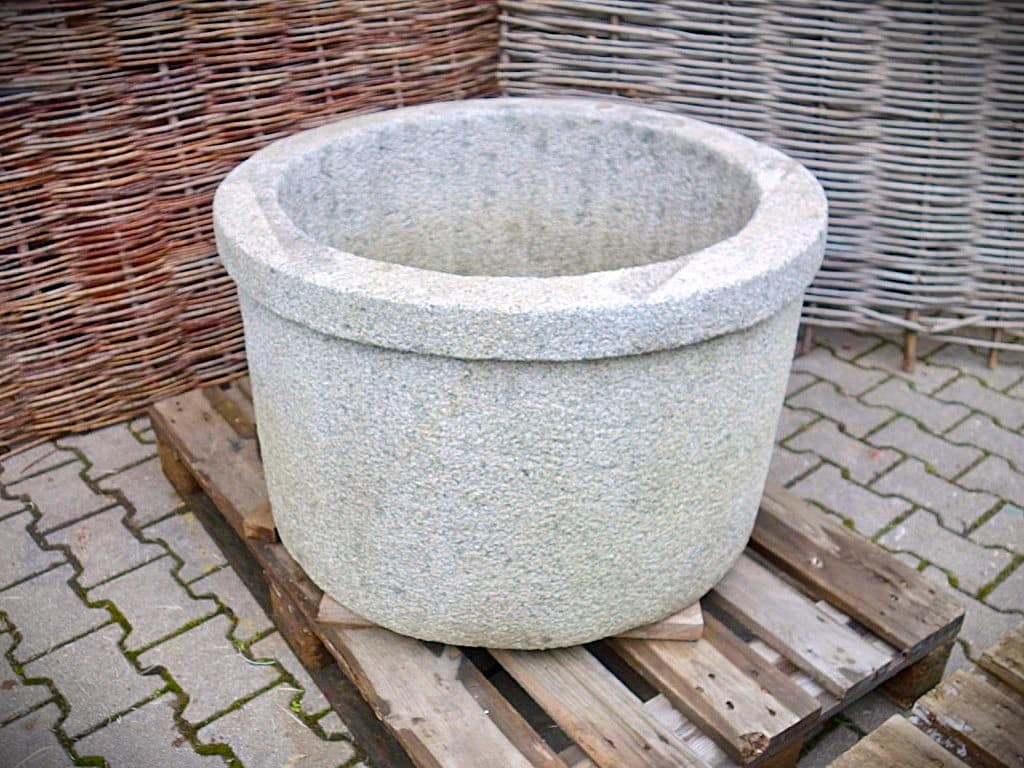 Die zwei Granittröge sind in Handarbeit gefertigte Einzelstücke, mit viel Erfahrung und Sorgfalt von Meisterhand aus Natursteinblöcken gehauen.