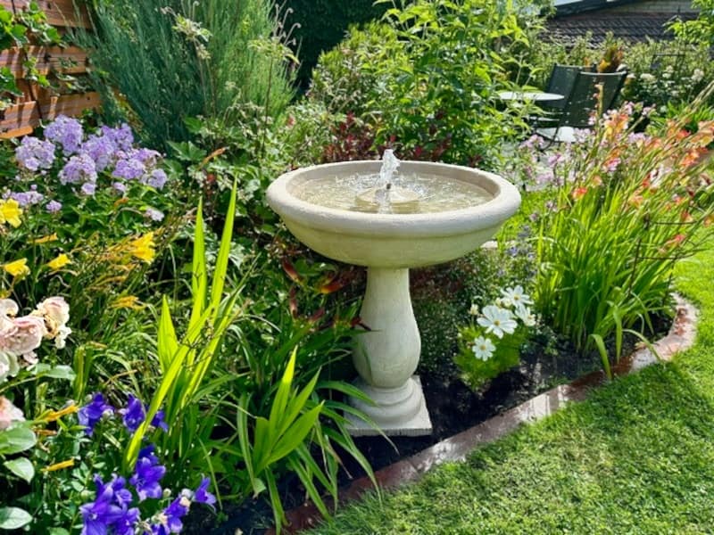 Dieser Gartenbrunnen sprudelt mit geschlossenem Wasserkreislauf. Lieferung komplett mit Umwälzpumpe und 10 m Stromkabel.