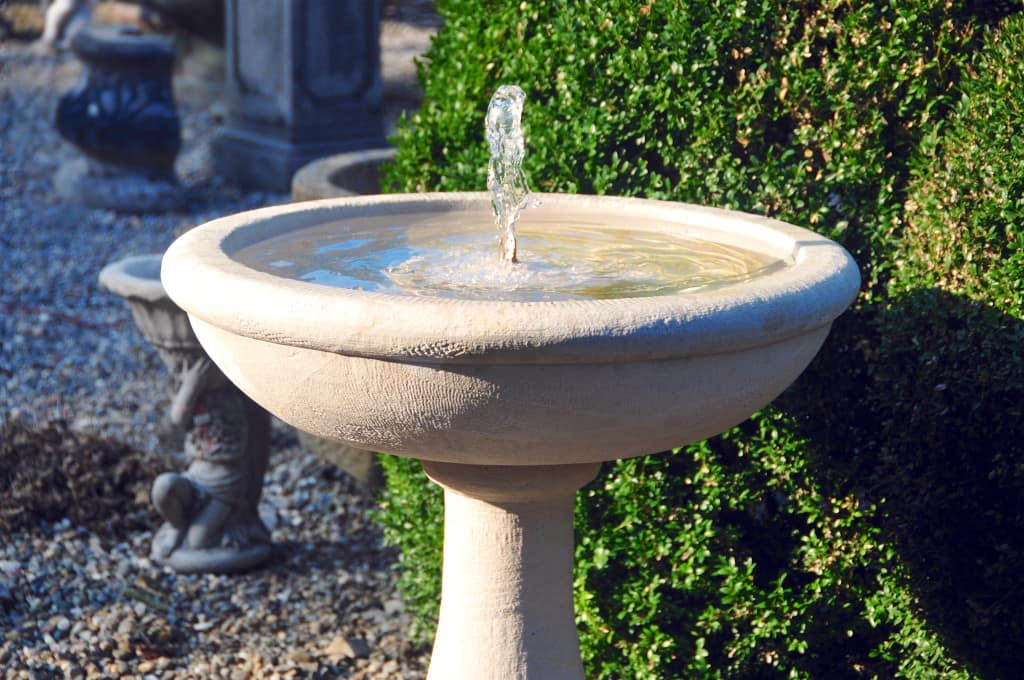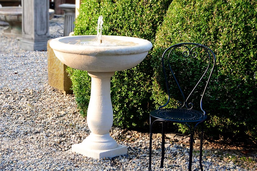 Der exklusive Natursteinbrunnen wird dreiteilig und inklusive Umwälzpumpe geliefert.