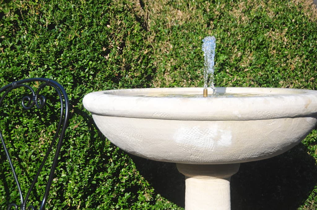 Dieser Gartenbrunnen sprudelt mit geschlossenem Wasserkreislauf. Lieferung komplett mit Umwälzpumpe und 10 m Stromkabel.