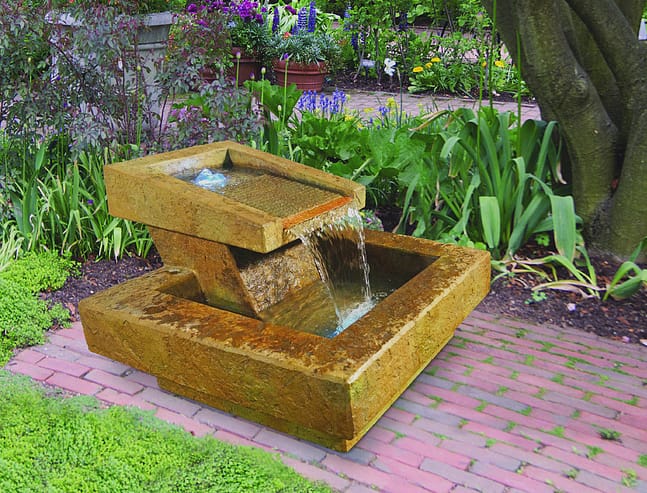 Dieser Gartenbrunnen sprudelt mit geschlossenem Wasserkreislauf. Lieferung komplett mit Umwälzpumpe und 10 m Stromkabel.