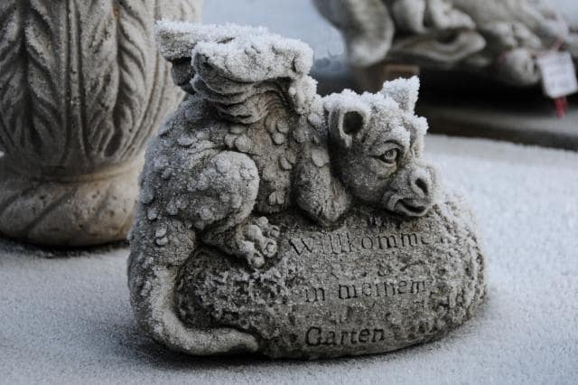 Diese Gartenfigur besteht aus hochwertigem, frostbeständigem Steinguss. Die Herstellung erfordert ein hohes Maß an Handwerkskunst und Know-How. Mehr im Blog »Kleine Materialkunde zu Steinstatuen und Steinfiguren.