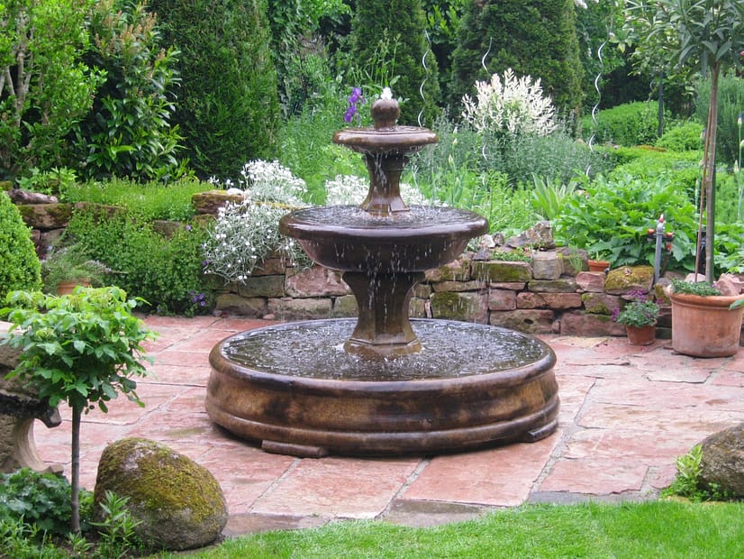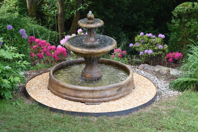 Dreistufiger Springbrunnen mit Bodenschale. Das Artikelbild ist ein Kundenfoto von 2018.