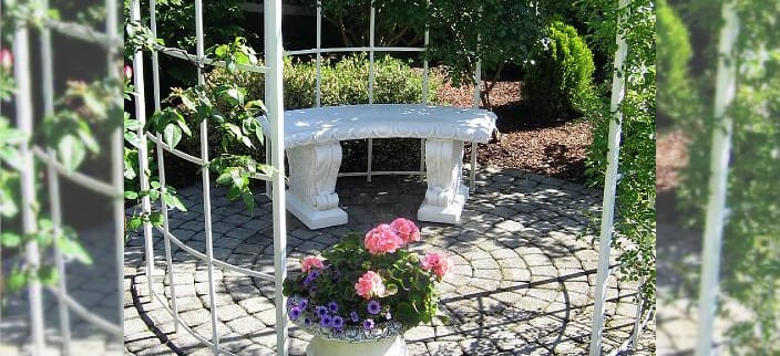 Gartenbänke, Tische und Hocker aus Steinguss: klassisch, zeitlos und witterungsbeständig