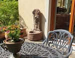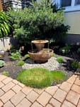 hier sind Fotos von meinem installierten Brunnen. Ich hatte gewartet, bis die neuen Pflanzen eingesetzt worden sind. Die neue Terrasse ist durch den Brunnen wirklich sehr schoen geworden. Der Klang von Wasser ist auch sehr angenehm. Nochmal vielen Dank fuer Ihre Hilfe!