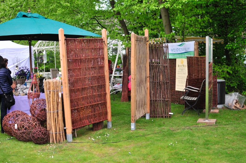 Besonderer Anziehungspunkt auf unserem Messestand war der achteckige Löwenbrunnen mit den vier wasserspeienden Löwenmasken. Bei vielen Kontakten und Beratungsgespächen standen auch die Weidenprofi Sichtschutzelemente aus Naturgeflecht im Fokus, die wir über unseren »Onlineshop anbieten. Die dekorativen Weidenzäune, Haselnuss- und Robinienzaunelemente, die wir als Musterzäune aufgestellt hatten, zeigten bei Regen und Schnee gleich ihre Witterungsbeständigkeit in der Praxis.